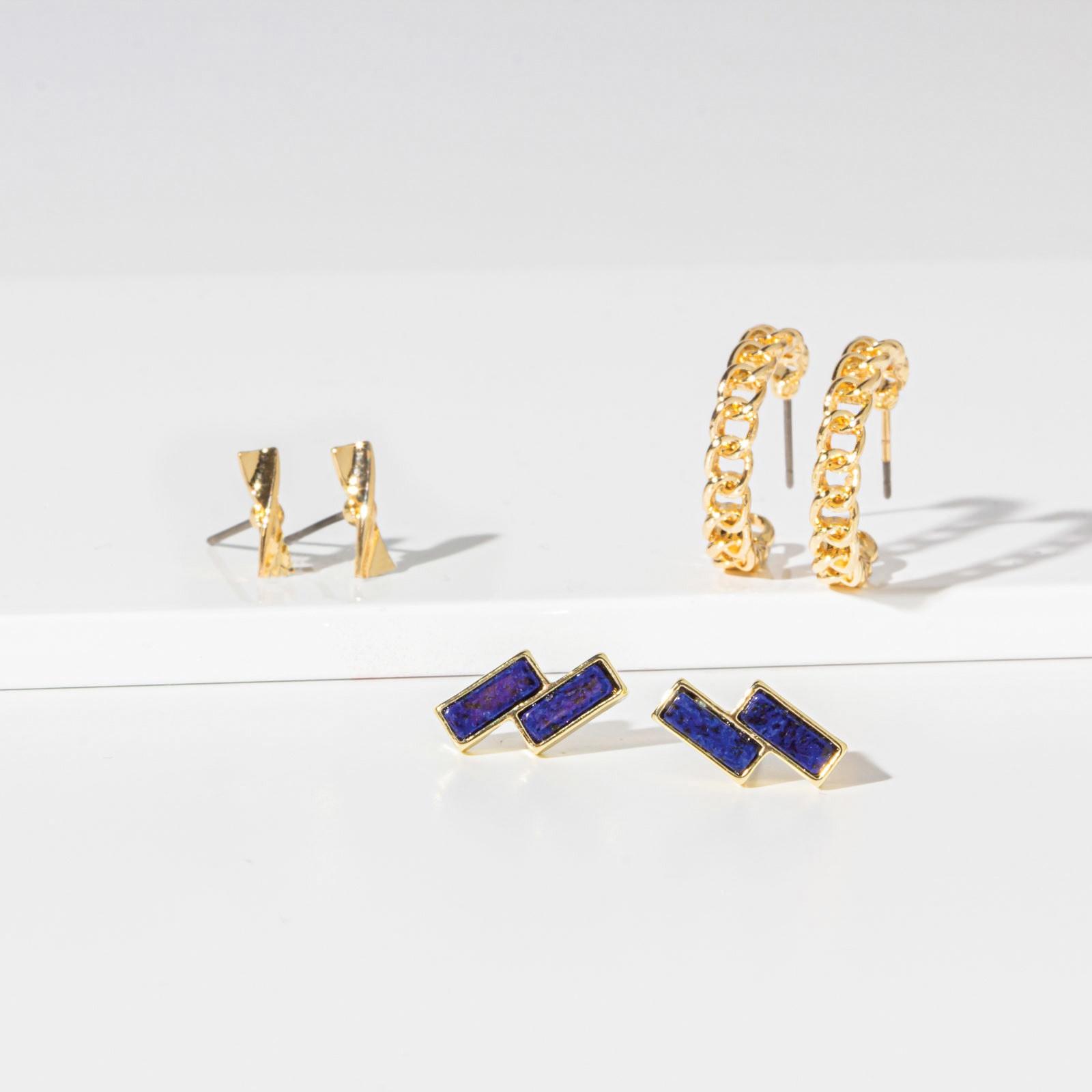 Soul Stacks® 3-Piece Terra Stone Mix and Match Earrings, Lapis Design, Green