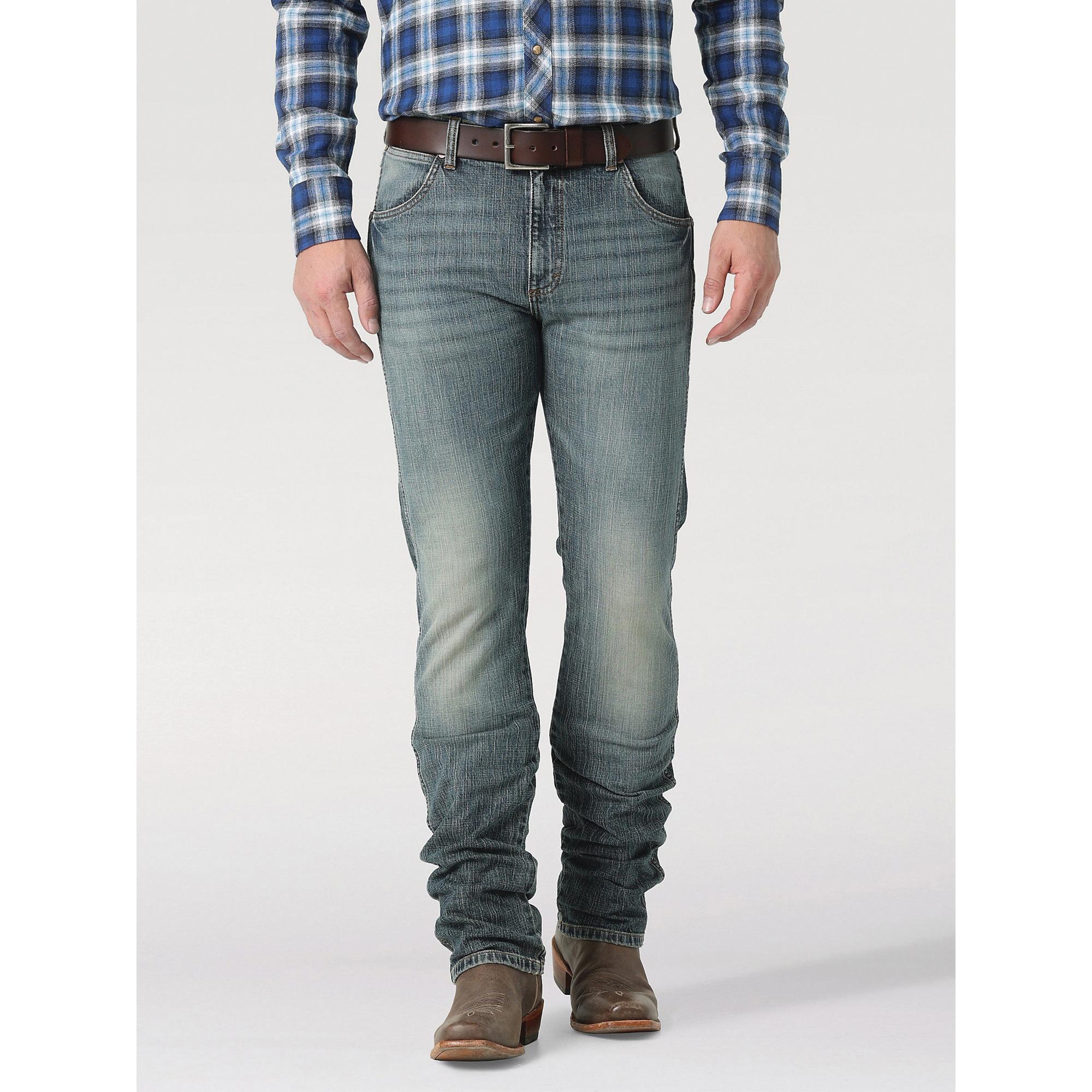 Wrangler® Retro® slim fit jeans nod to our history while introducing fits and washes suited for the modern cowboy. Designed with a closer fit and leg opening that still falls comfortably over boots, our men's Wrangler® straight leg slim fit jeans add extra-style to the classic look you love. These jeans sit low on the waist and make it easy to show off your favorite belt buckle. That design detail is our western heritage showing through, something that happens often with the Wrangler® Retro® collection. If you're going for a coordinated cowboy-style with these men's slim fit straight leg jeans, pair them with a western Wrangler® Retro® button-up to complete your look.