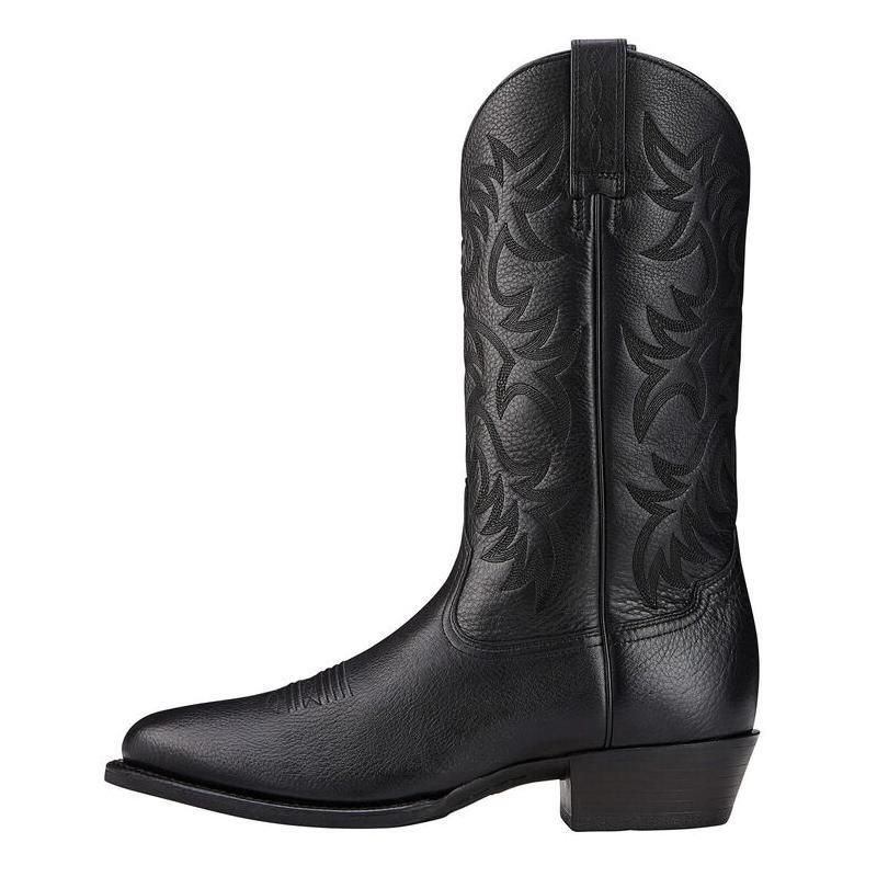 10002218 Series Men's Heritage Western Boots, 9, EE, Black Deertan, R Toe, Premium Full-Grain Leather Upper