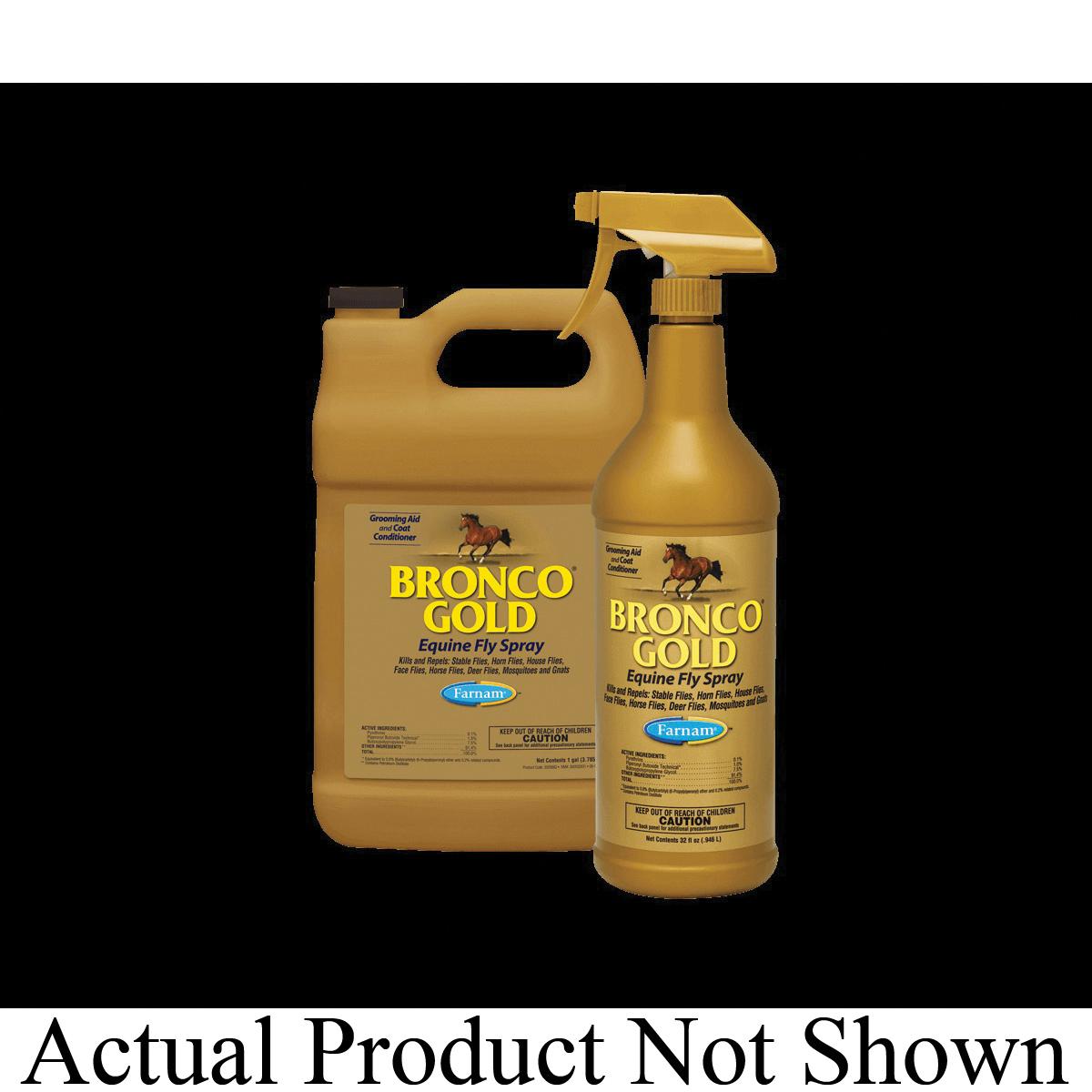 Bronco® Gold equine fly spray guards your horse against pesky flies while giving him a healthy shine! Kills and repels six fly species, mosquitoes and gnats. Also doubles as a grooming aid and coat conditioner.
