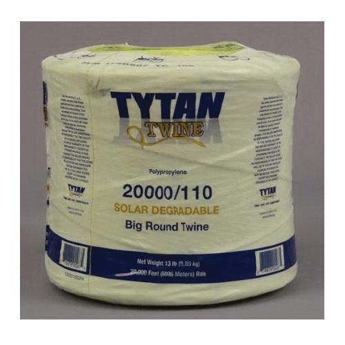 Midgrade poly twine used for wrapping round bales of hay. Solar degradable, economically priced, it begins to degrade after being exposed to sunlight for 30 days. With average bale weight of 1200 lb, this product should tie approximate 45 bales.