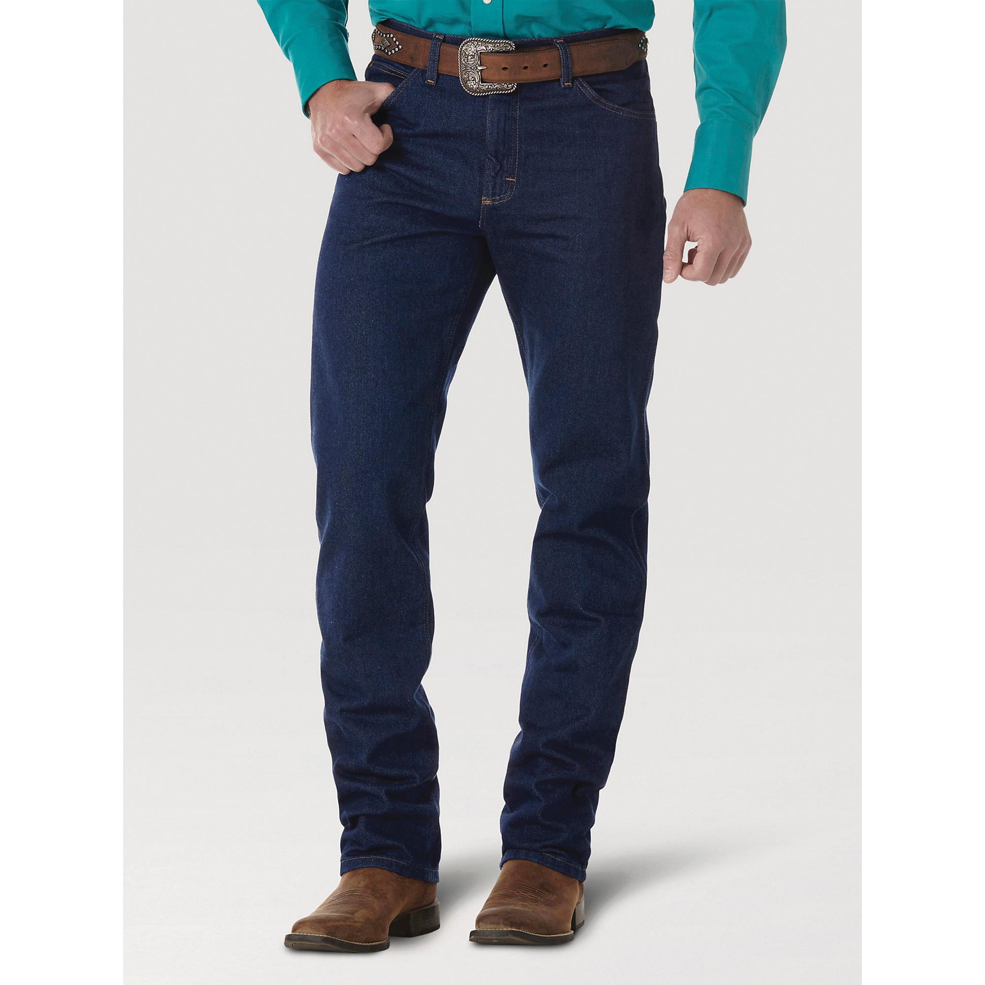 Cowboys in and out of the rodeo arena have been counting on Wrangler® Cowboy Cut® performance jeans to get them through their toughest days for decades. We're the go to for men's Cowboy Cut® jeans because we've walked a mile in cowboy boots and we know regular jeans just won't cut it. Featuring 20% long-lasting denim, a functional watch pocket and smooth seams, these jeans are made to keep up and keep you comfortable. Premium performance Cowboy Cut® regular fit jeans are made to withstand bull riding, cattle roping and everything in between.