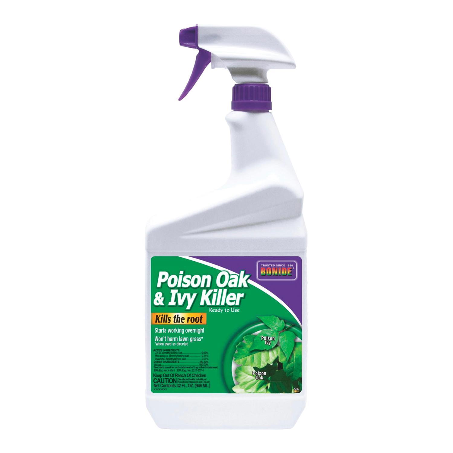 BONIDE® poison ivy and oak killer is a systemic weed killer designed to control weeds to the root. It won't harm lawngrass and is safe and effective to use when used as directed. Product is rainfast after application is dry.