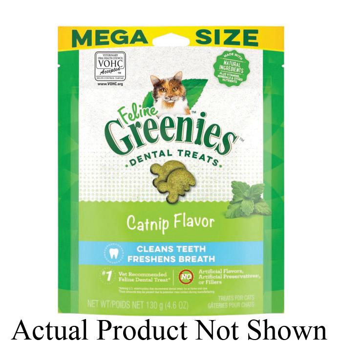 Feline Greenies™ catnip flavor dental cat treats were designed to help keep your cat's teeth clean and healthy. The crunchy texture of these irresistible cat snacks helps clean teeth, reduce tartar build-up and freshen cat breath, letting you enjoy cuddle time even more. Made with natural ingredients plus vitamins, minerals and other nutrients, these tasty natural dental treats are nutritionally complete and balanced for adult cats. Plus, Feline Greenies™ dental treats contain less than 2 calories per treat and are the #1 vet recommended feline dental treat. For some healthy play, try placing a few cat treats inside a treat dispenser toy and watch your cat chase and swat away. Give your cat Feline Greenies™ dental treats and you're sure to hear happy purrs of joy. Feline Greenies™ daily dental treats for healthy and happy dental care.