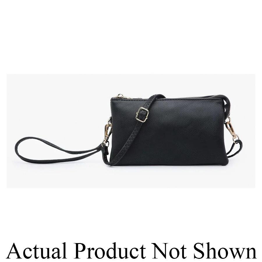 Discover the Riley Crossbody, a beloved favorite and a top seller in our eco-friendly handbag collection. This versatile vegan leather crossbody/clutch is designed for both functionality and style. It features two major compartments, a secure middle zipper pocket, and a top zipper closure to keep your essentials organized. Inside, find two slip pockets and six cardholders, providing ample space for all your belongings. Whether worn as a crossbody for hands-free convenience or carried as a clutch for a sleek look, the Riley adapts to your style needs. Crafted from premium vegan leather, it offers both luxury and durability. The bag comes with a detachable wristlet strap and an adjustable shoulder strap, allowing for versatile carrying options. Dimensions: 9"L x 1.5"D x 5"H - the perfect balance between practicality and elegance. Elevate your accessory game with the Riley Bag, your go-to choice for any occasion.