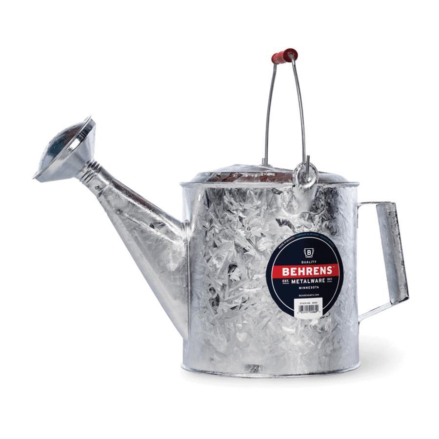 Built with the highest quality hot dipped steel, this watering can is durable and made to last. Features an offset bottom to keep the can off the ground and two durable handles for easy portability and pouring. This can is ideal for smaller watering needs. A stronger alternative to plastic, this watering can is rodent proof, recyclable, and weather resistant. Sealed to be watertight. The rosette is not removable. May contain globally sourced materials.