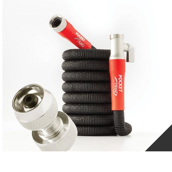 Get ready to fall in love with our Pocket Hose® Silver Bullet™! With its seamless bullet case outer shell, say goodbye to snags, wear, and tears while keeping the inner hose protected. The Silver Bullet™ boasts strong machined-aluminum connectors, free from lead, and to top it off, it includes a FREE Turbo Shot adjustable spray nozzle. It's the ultimate value. For the hose to fully expand, do not turn the shut-off valve to the "on" position until after turning the water spigot on and allowing water to flow through the hose.