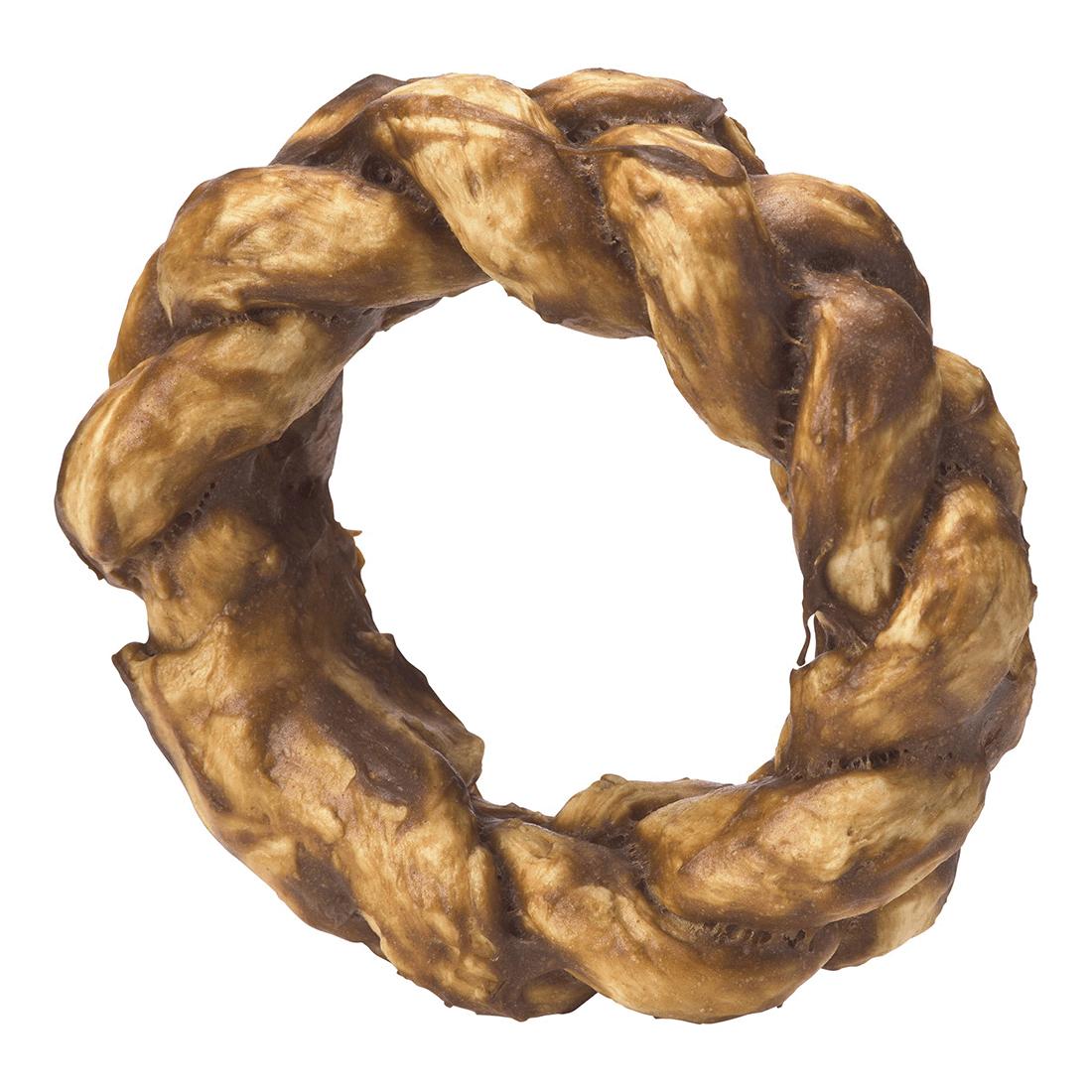 Our Bakery Collection of beef flavored collagen based chews provides a long lasting, highly digestible treat for your pet. You can rest easy knowing that your pet can enjoy Nothin' to Hide safely and reliably. Contains 1 5" braided ring in a resealable pouch.
