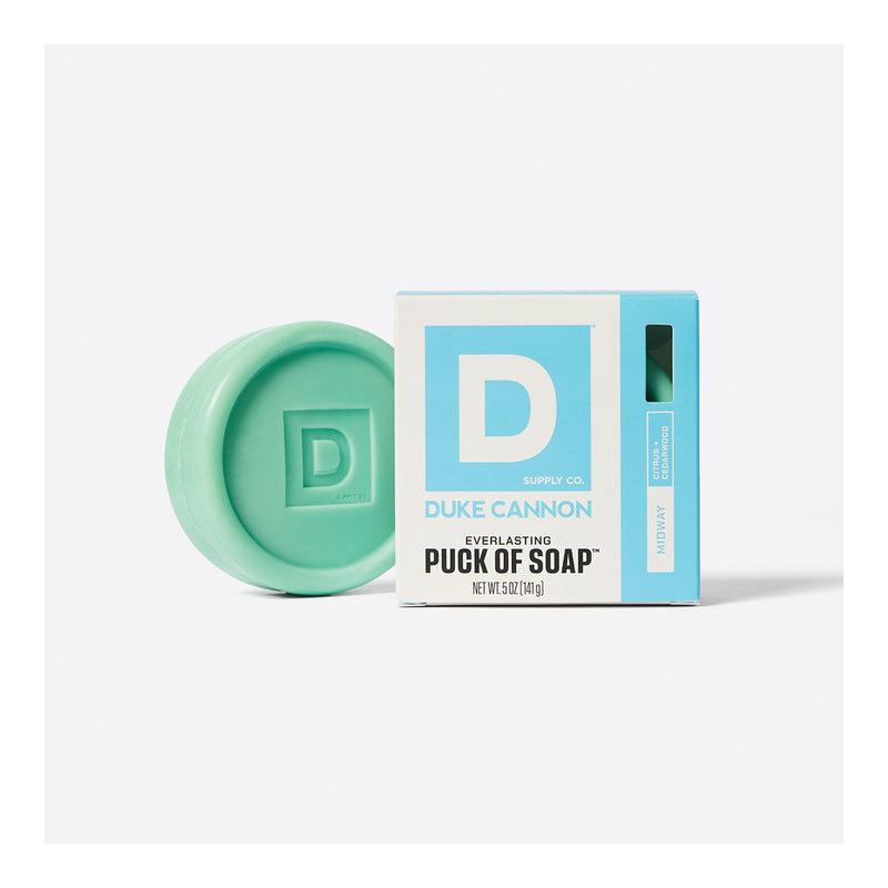 Duke Cannon always uses the right tool for the job. Like this superior-grade soap puck that fits snugly in his hand, for instance. Triple-milled to last longer, it easily outlasts common bar soaps.